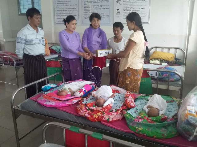 ၂၀၁၈ ခုနှစ်၊ ဧပြီလ ၆ ရက်နေ့တွင် မြန်မာနိုင်ငံမိခင်နှင့်ကလေး စောင့်ရှောက်ရေး အသင်း ဥက်ကဌ ပါမောက်ခ ဒေါက်တာစန်းစန်းမြင့်အောင်၊ အတွင်းရေးမှူး ဒေါက်တာ နွယ်နီအုန်း နှင့် အဖွဲ့တို့ သည် သားဖွားမီးယပ်အထူးကုဆေးရုံကြီး၊ နေပြည်တော်တွင် သုံးမှှာပူးကလေးငယ်များအတွက် ငွေကျပ် ၃၀၀,၀၀၀ိ/ (သုံးသိန်းကျပ်) ကို သွားရောက်အားပေးထောက်ပံ့ကူညီခဲ့ပါသည်။ ထို ကျား (၂) မ (၁) သုံးမှှာပူးကလေးငယ်များအား ၂၀၁၈ ခုနှစ်၊ မတ်လ ၂၈ ရက်နေ့တွင် ပဲခူးတိုင်းဒေသကြီး၊ သံတောင်ကြီးမြို့နယ်၊ ကၽွန်းတောကုန်း ကျေးရွာမှ အဖ ဦးစောသန်း၀င်း နှင့် အမိ ဒေါ်ချိုမာအေး တို့က သားဖွားမီးယပ်အထူးကုဆေးရုံကြီး၊ ဥတ်တရသီရိမြို့နယ်၊ နေပြည်တော်၌ မွေးဖွားခဲ့ကြောင်း သတင်းရရှိပါသည်။