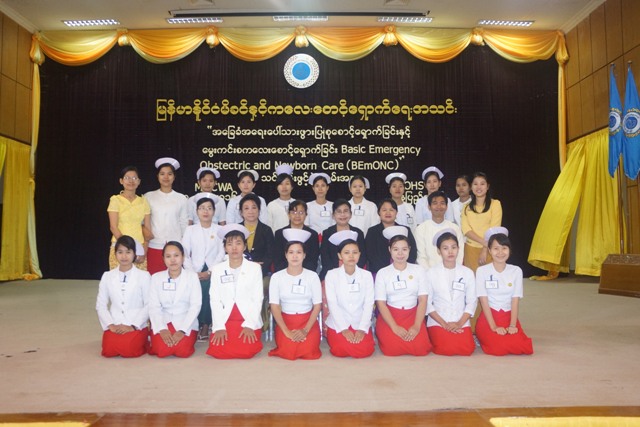 ျမန္မာႏိုင္ငံမိခင္ႏွင့္ကေလးေစာင့္ေရွာက္ေရးအသင္းႏွင့္ျပည္သူ႕က်န္းမာေရးဦးစီးဌာနတို႔ပူးေပါင္းေဆာင္ရြက္ေသာ “ အေျခခံအေရးေပၚသားဖြားျပဳစုေစာင့္ေရွာက္ျခင္းႏွင့္ေမြးကင္းစကေလးေစာင့္ေရွာက္ျခင္း Basic Emergency Obstectric and Newborn Care (BEmONC)” ဒုတိယအသုတ္ သင္တန္းကို ၂၀၁၆ ခုႏွစ္၊ ၁၃-၁၂-၂၀၁၆ ရက္ေန႕မွ ၁၅-၁၂-၂၀၁၆ ရက္ေန႔ထိ (၃)ရက္ၾကာ သင္ၾကားပို႕ခ်သြားပါသည္။ သင္တန္းတက္ေရာက္သူစာရင္းမွာ ေအာက္ပါအတိုင္းျဖစ္ပါသည္။