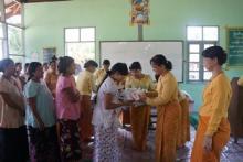 ျမန္မာနိုင္ငံမိခင္နွင့္ကေလးေစာင့္ေရွာက္ေရးအသင္းမွ ျကီးမႉးက်င္းပသည့္ မိသားစုမ်ား၏၀င္ေငြတိုးတက္ေစရန္ ရည္ရြယ္၍ဖြင့္လွစ္ေသာ ဖန္စီအိတ္ထိုးနည္းသင္တန္းအမွတ္စဥ္(၁/၂၀၁၅)ဖြင့္ပဲြအခမ္းအနားကို ၂၀၁၅ ခုနွစ္၊ ေမလ(၂၆)ရက္ေန့ နံနက္(၉:၀၀)နာရီတြင္ ေနျပည္ေတာ္၊ ဒကိၡဏသီရိျမို့နယ္၊ သုခုမလမ္းရိွ ျမန္မာနိုင္ငံမိခင္နွင့္ကေလးေစာင့္ေရွာက္ေရးအသင္းအစည္းအေဝးခန္းမ၌ က်င္းပျပုလုပ