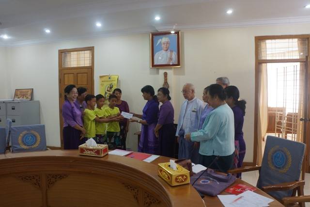 Supporting cash 10000 kyat to each triplet boy, total as 30,000 kyat monthly for their education