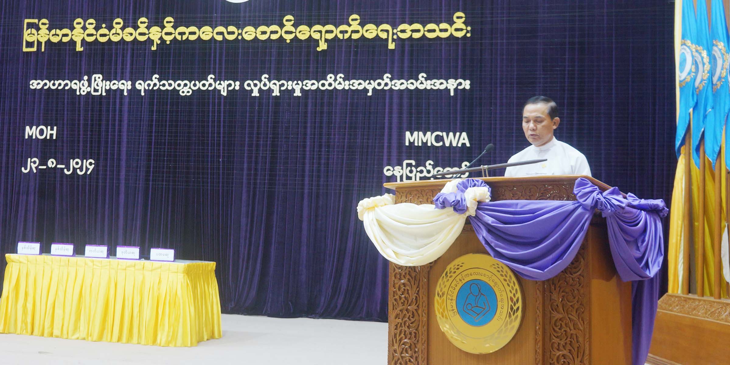 In this ceremony, Deputy Minister for Ministry of Health, Prof. Dr. Aye Tun, Director General, Deputy Director Generals from Ministry of Health, the President Prof. Dr. San San Myint Aung and Central Executive Committee members of Myanmar Maternal Child Welfare Association, the President and members of Myanmar Women Affairs federation, the members of Women and Child Development Federation, the vice president of Myanmar Red Cross Society, the President and members of Nay Pyi Taw MCWA Supervisory Committee, the President and members of District MCWA Supervisory Committee, the President and members of township MCWA, pregnant women an invited guests attended.